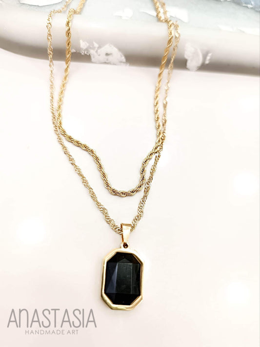 Necklace black stone charm