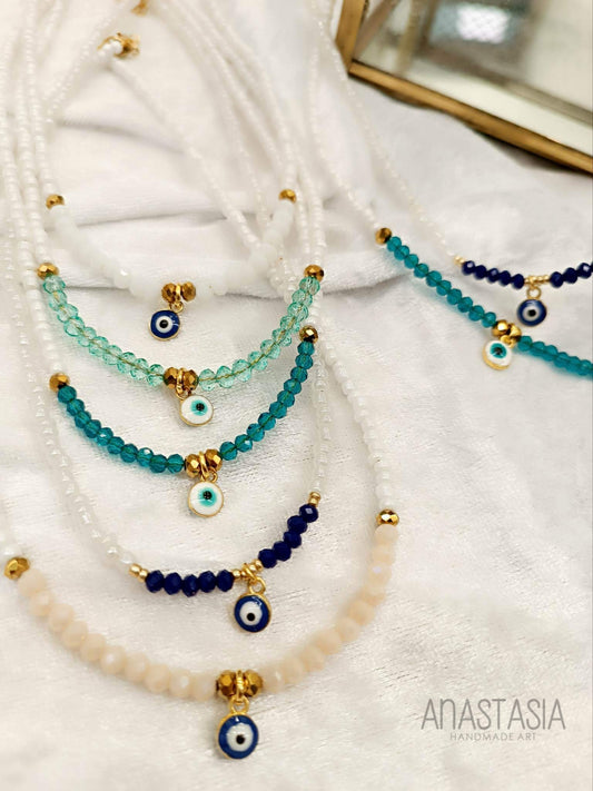 Necklace with beads evil eye charm