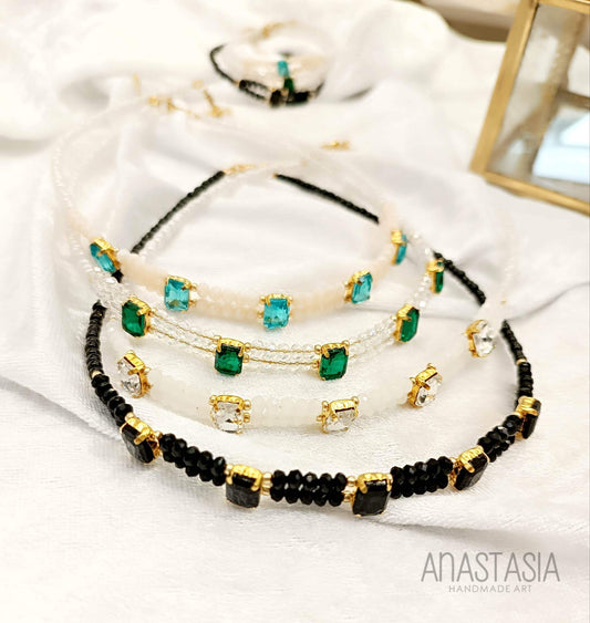 Necklace with beads and crystal stone charm