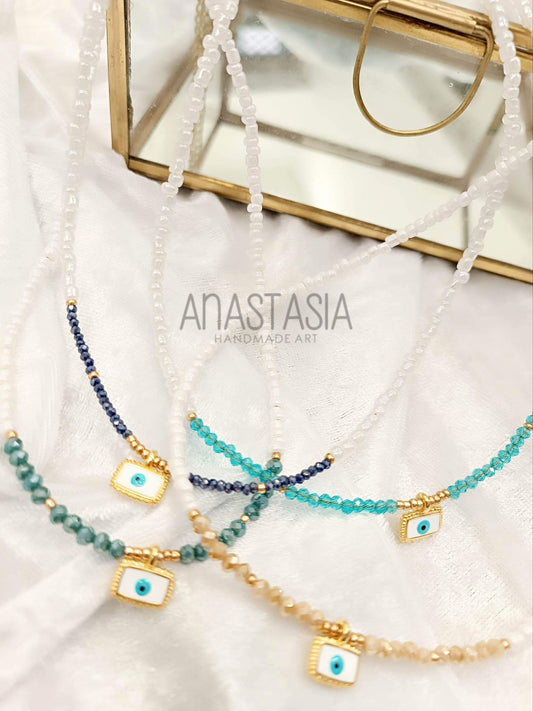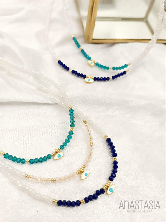 Necklace white with evil eye